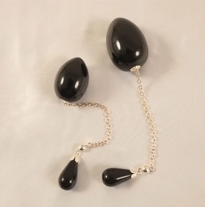 / OEH2 Insertable black egg with silver chain and tassel